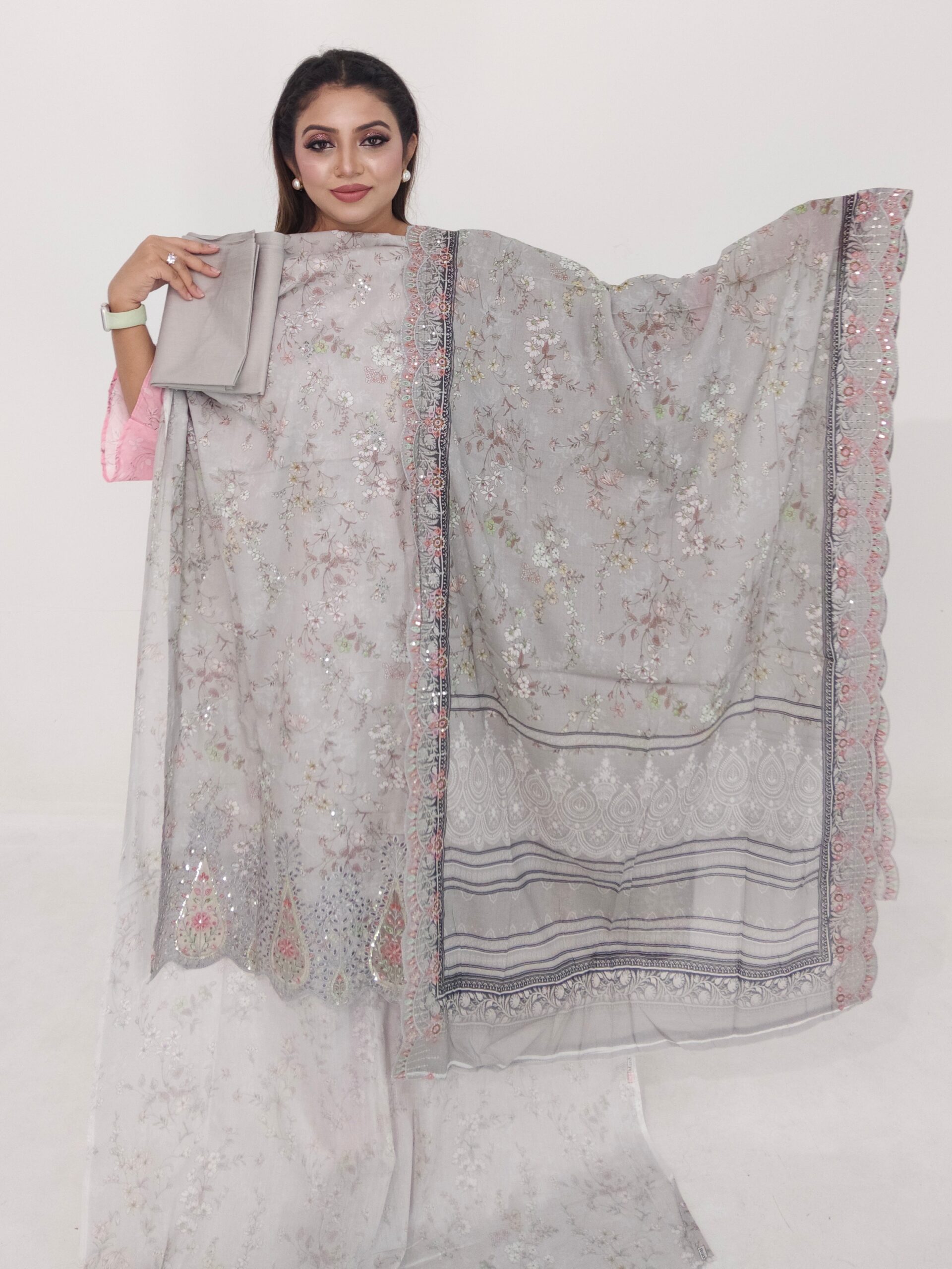 Elegant floral design with beautiful embroidery and sequence detailing