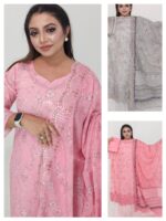 Cotton Embroidery & White Sequence Work 3 piece