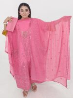Enhance your elegance with this stunning Georgette Unstitched 4 Piece with Embroidery & Sequence Work. Designed for women who love luxury and sophistication, this outfit features premium georgette fabric for both kameez and dupatta, offering a graceful and flowy drape.