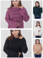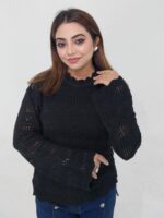 Its hollow knit texture adds a trendy and modern touch, while the bell sleeves enhance the overall elegance of the outfit. Perfect for casual outings, office wear, or daily winter styling.