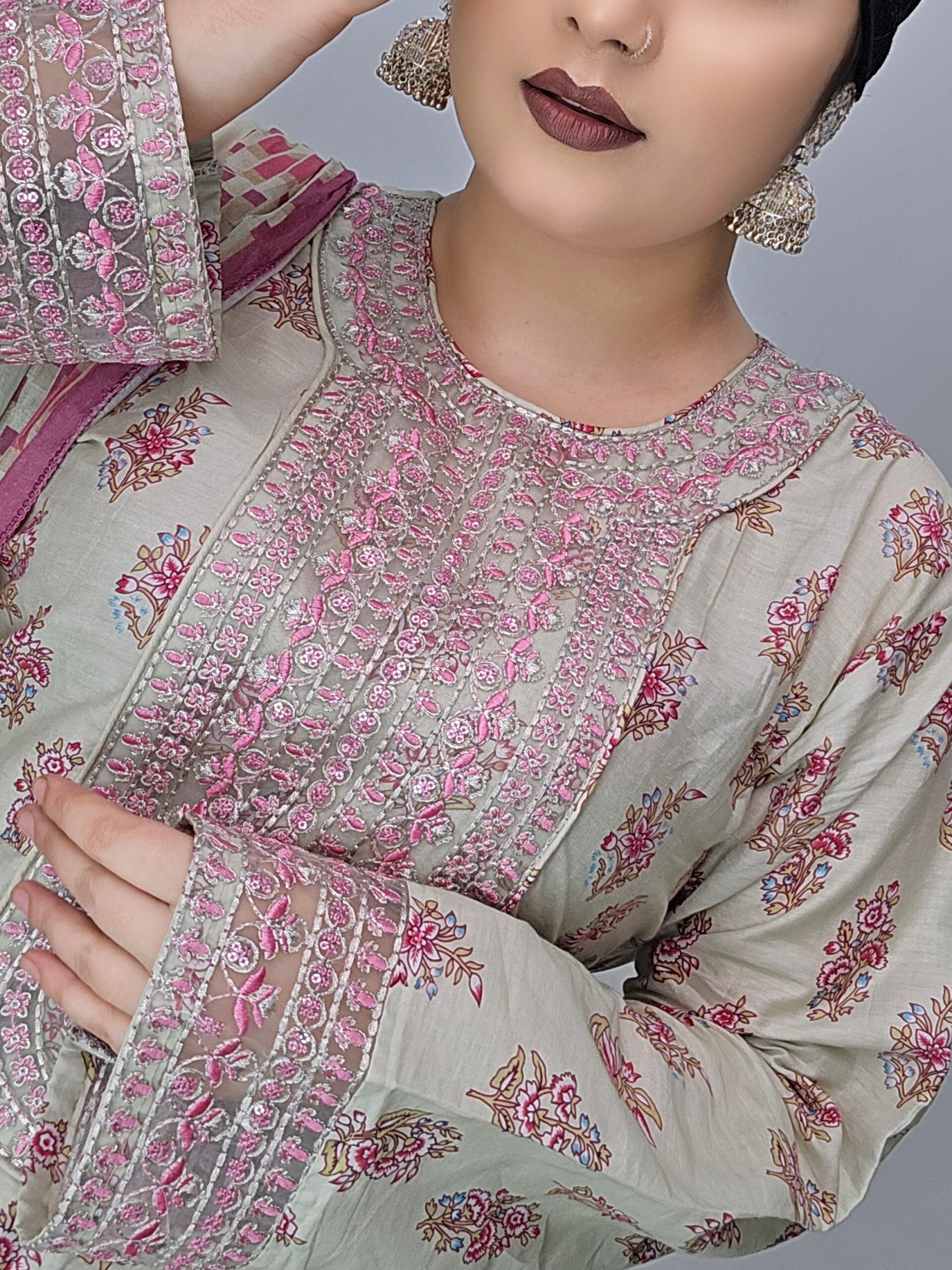 Unstitched Cotton 3-Piece Dress – Embroidery & Sequence Work