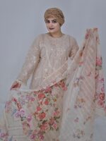 Experience timeless elegance with this beautifully crafted Readymade Cotton Three-Piece Dress, designed with intricate embroidery, chicken kari (chikankari) & delicate lace work 🌿. The soft cotton base combined with detailed craftsmanship gives this outfit a luxurious yet comfortable feel—perfect for graceful everyday wear or special occasions 💫.