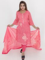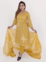 Breathable Cotton Kamij Set with Plain Pant & Printed Dupatta