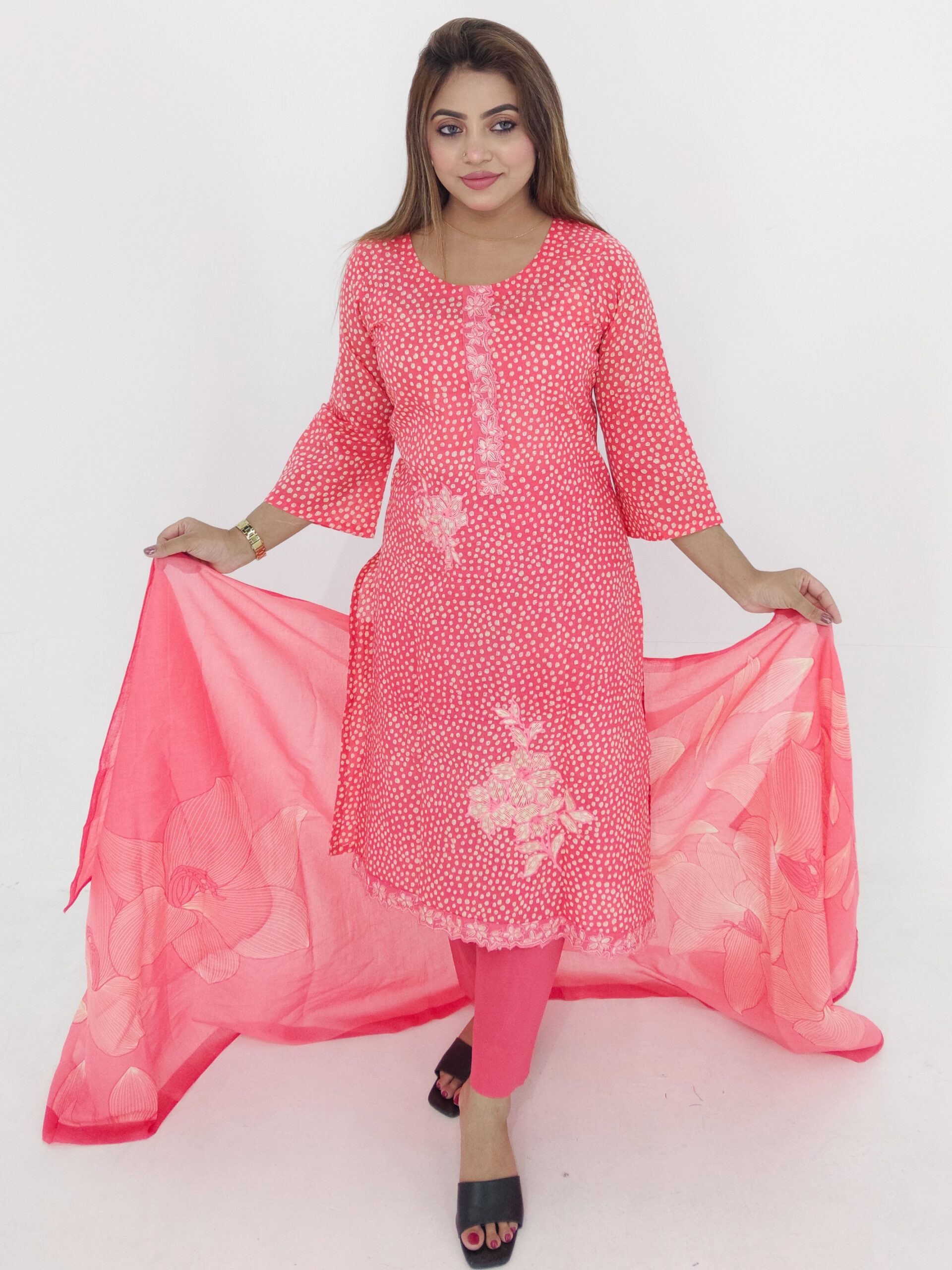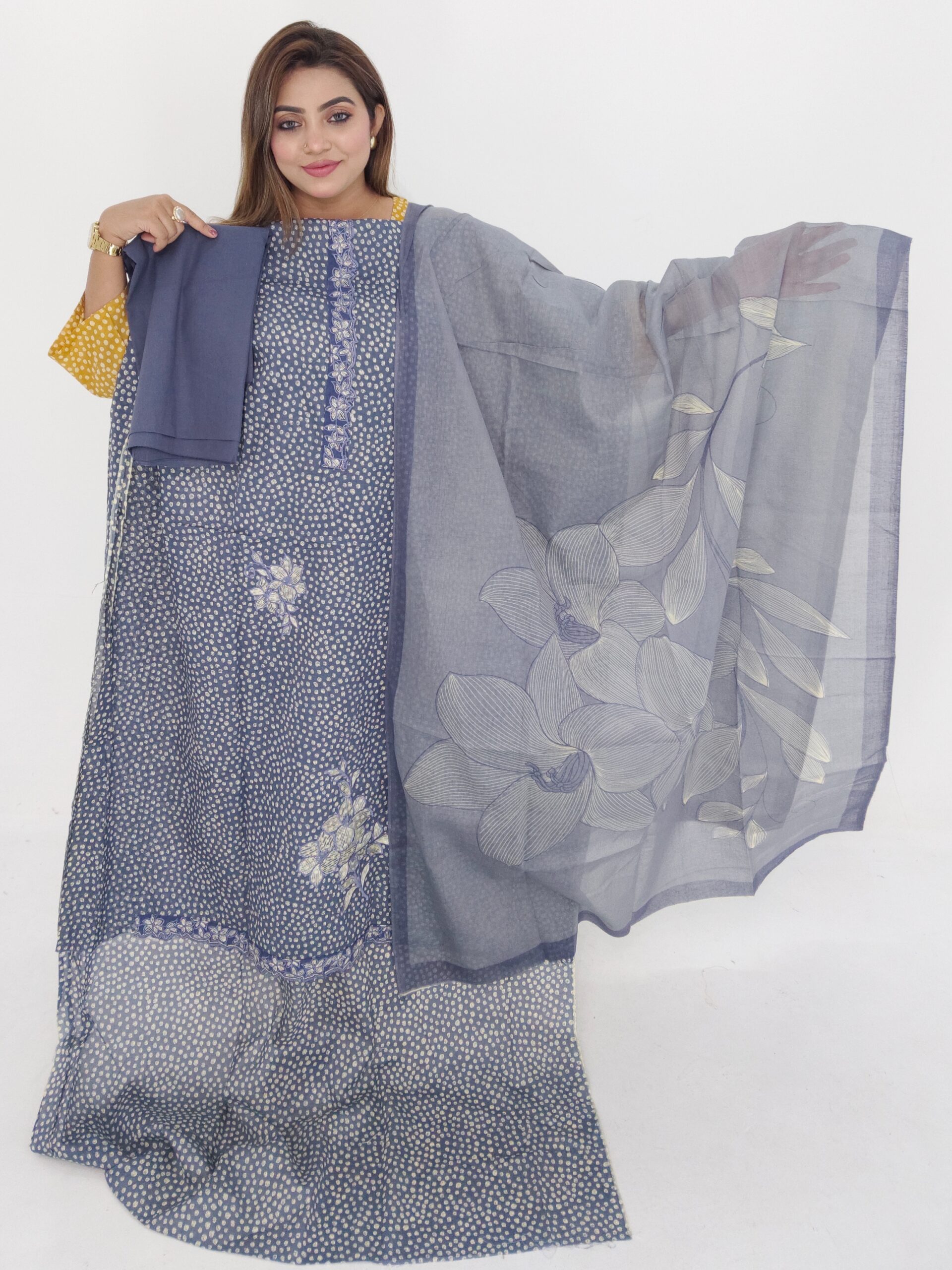 Upgrade your wardrobe with this beautiful Cotton Embroidery Unstitched 3 Piece set. Crafted from high quality Cotton fabric, this outfit features premium embroidery work which gives a classy & elegant look. Suitable for all weather in Bangladesh & perfect for casual outing, office & regular wear.