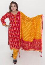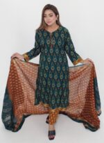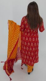 Breathable Cotton Kamij Set with Plain Pant & Printed Dupatta