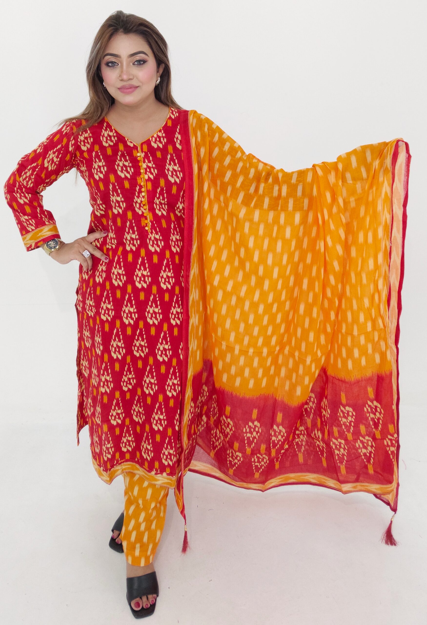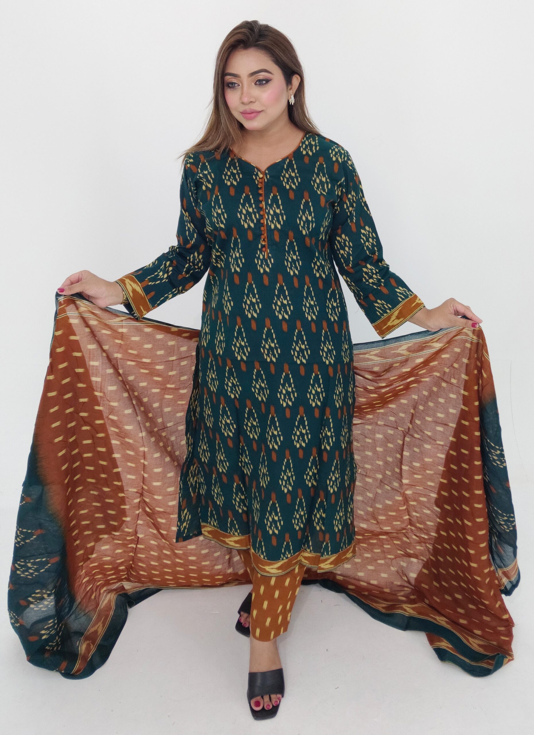 Experience comfort and elegance with our Premium Pure Cotton Readymade 3 Piece, crafted to bring effortless grace to your everyday and festive looks. Designed with breathable, soft pure cotton fabric, this set offers both comfort and class — perfect for the warm Bangladeshi weather.