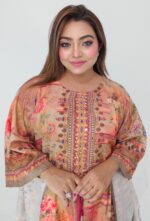 This 2-piece kaftan set is available in free size, fitting up to 46 inches, ensuring an elegant fit for most body types. With a length of 45 inches, it provides full coverage and a graceful fall, perfect for women who love traditional style with a modern twist.