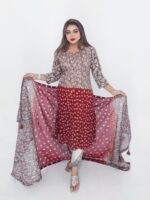 The Batik print design adds a touch of cultural sophistication, making it perfect for women who love classic yet trendy fashion. This set includes Kameez, Salwar, and Dupatta fabrics that can be tailored according to your preferred fit and style.