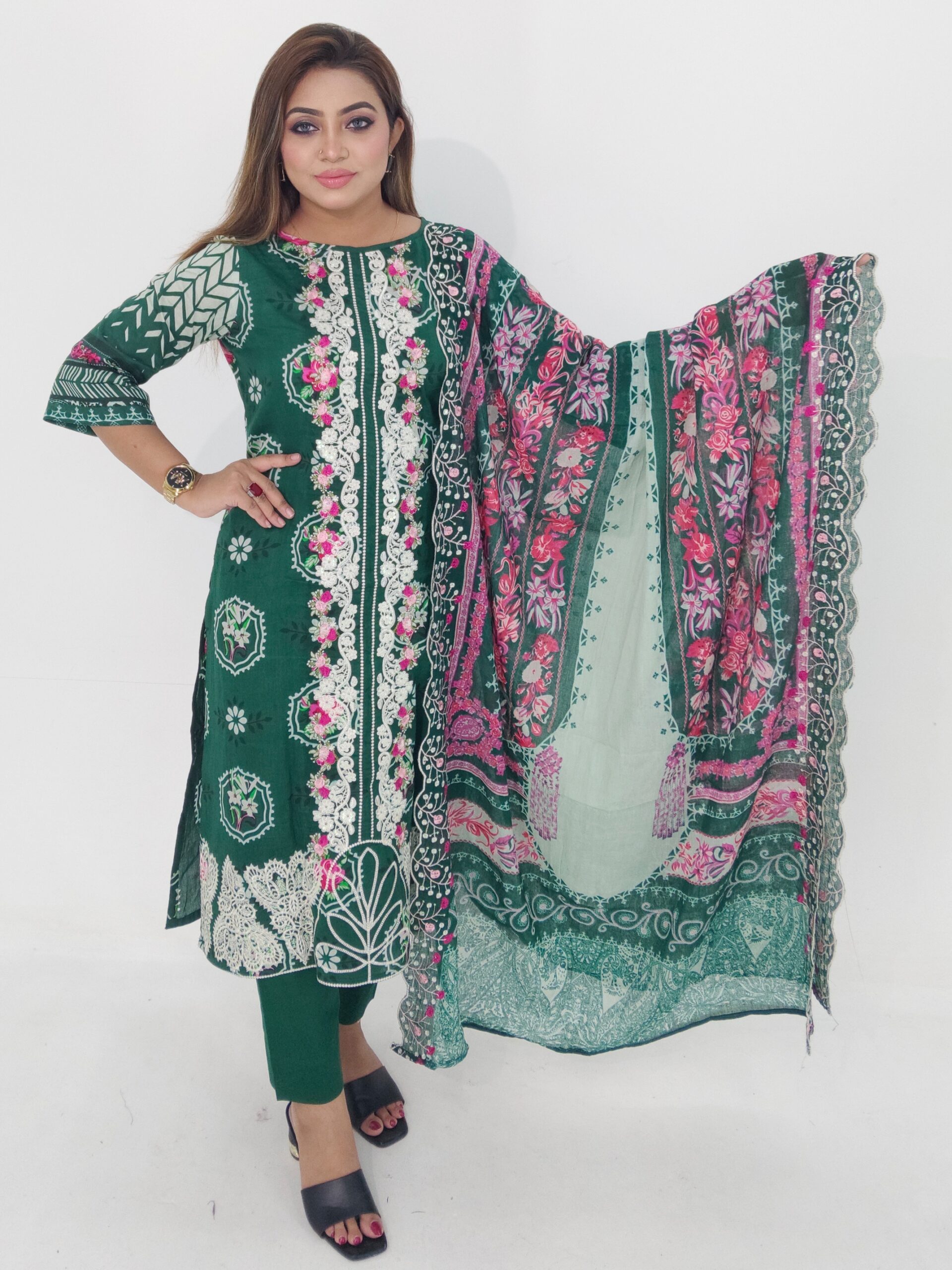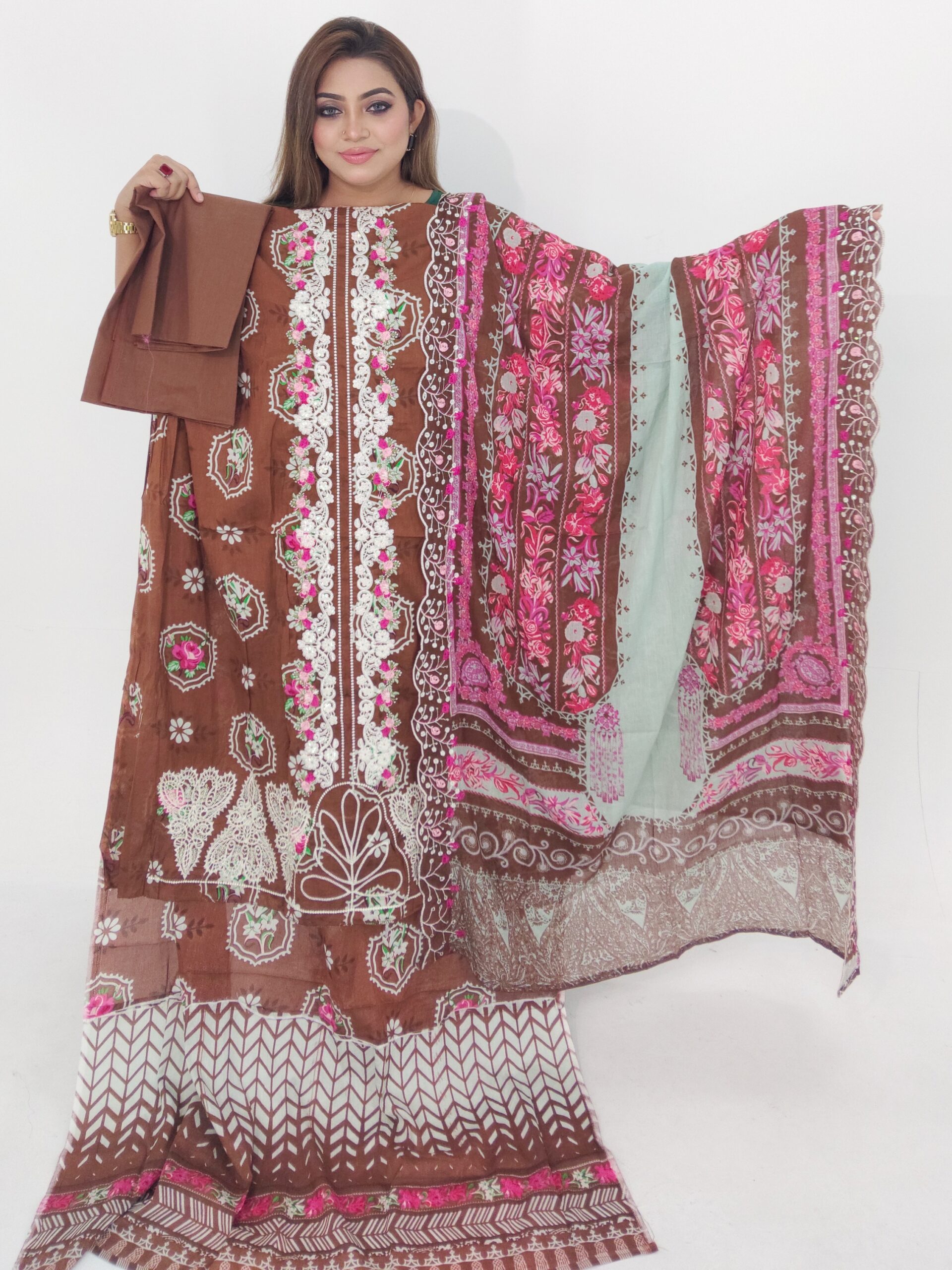 Elegant Unstitched Cotton Three-Piece Dress – Digital Print Dupatta