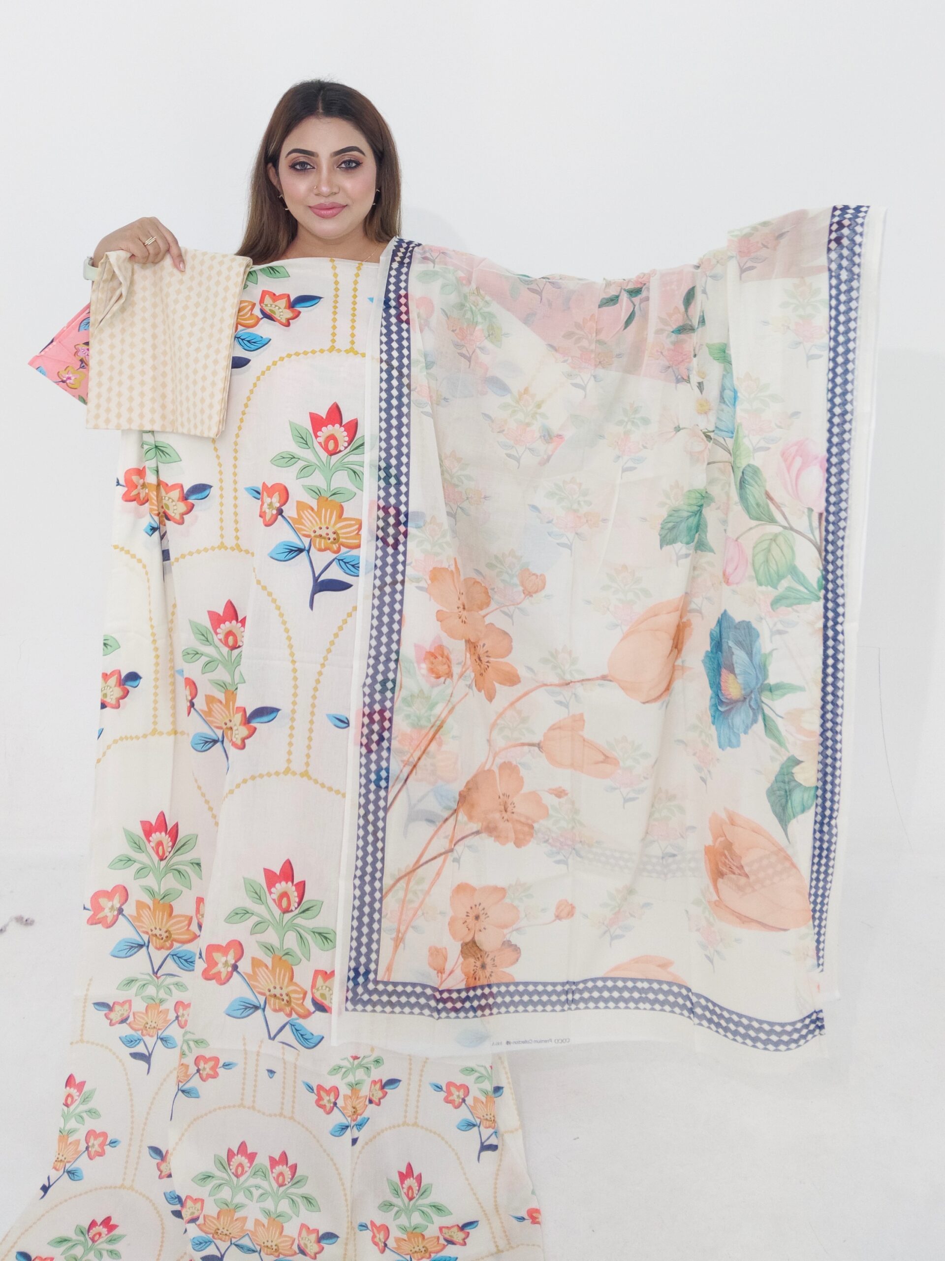 Upgrade your wardrobe with our Pure Cotton Floral Print Unstitched 3 Piece, designed for comfort and elegance. Crafted with high-quality pure cotton, this set ensures maximum softness and breathability, perfect for everyday use and warm weather.
