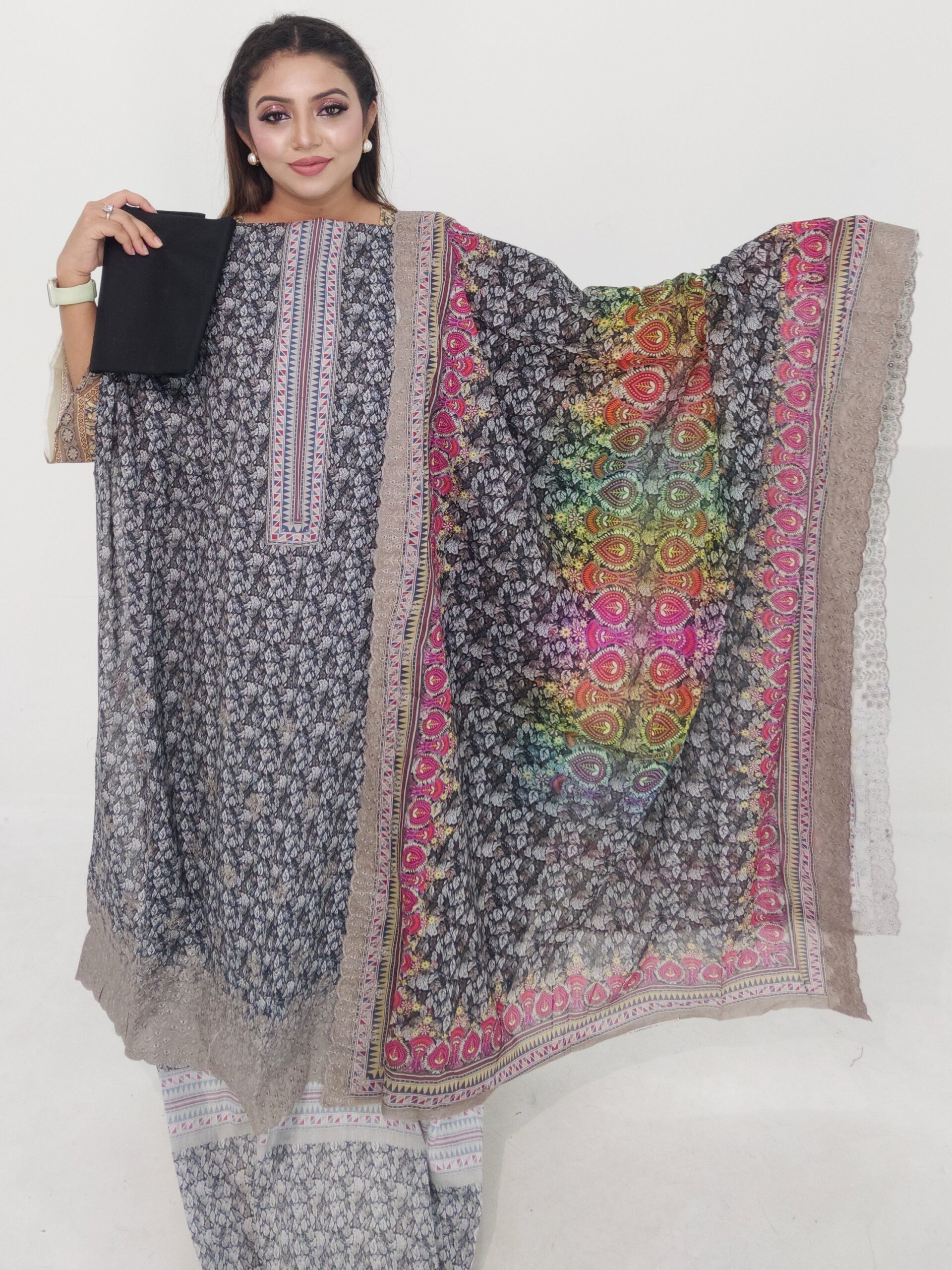 Add comfort and elegance to your wardrobe with this Pure Cotton Floral Print Embroidered Unstitched 3 Piece Dress. Crafted from premium pure cotton fabric, this outfit ensures breathability and all-day comfort, making it ideal for daily wear.
