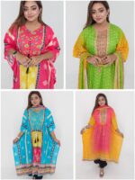 This outfit includes a beautifully crafted kaftan and matching dupatta, made from soft, breathable cotton fabric. The kaftan features a free size body (up to 46″) and a length of 45 inches, ensuring a perfect and relaxed fit for different body shapes. The lightweight material makes it ideal for everyday wear, while the elegant design gives it a boutique-style finish suitable for outings, home wear, and small occasions.
