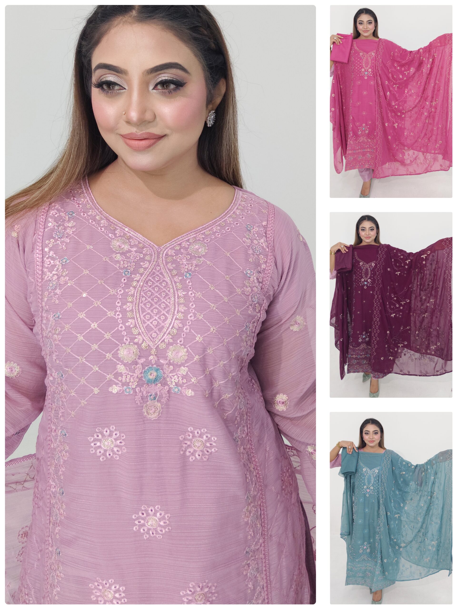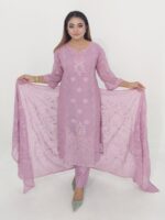 Add elegance and glamour to your festive wardrobe with this Soft Georgette Unstitched 4 Piece, crafted for women who love premium fabrics and detailed craftsmanship. The soft georgette kameez is beautifully adorned with embroidery and sequence work, creating a sophisticated and eye-catching look.