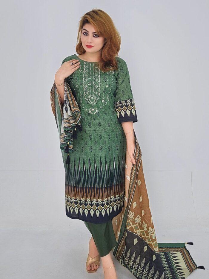 Be the first to review “Stylish Digital Print & Embroidered Unstitched 3-Piece Cotton Suit” Cancel reply